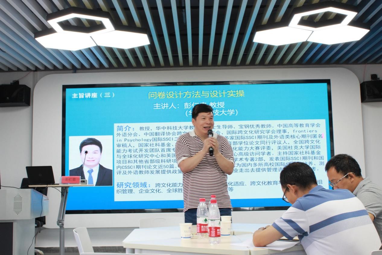 期间,外国语学院广大教师先后聆听了三场专家专题报告:英国华威大学文化与传播学博士韩瑜主讲的“质性研究方法与软件实操”。英国爱丁堡大学教育学博士、华中师范大学外国语学院英语系教授、博士生导师、外国语学院外语教师教育研究中心任、“荆楚名师”专家委员会委员闫春梅教授主讲的“行动研究理念与研究设计实操”以及华中科技大学教授、博士生导师、Frontiers in Psychology 国际 SSCI 二区期刊客座主编、教育部长江学者彭仁忠教授主讲的“问卷设计方法与设计实操”。