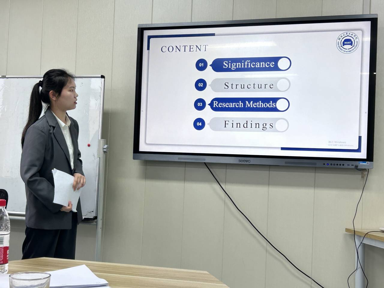 在答辩中,学生们展现了自己的研究成果和学术能力,充分展现了外国语学院本科生高质量的学术水平和专业能力。答辩教师们对学生们的提问严谨认真,指导学生们在学术研究中发挥自己的创造力和思考力,为学生们提供了宝贵的指导和建议。答辩小组重点对论文框架、研究问题和研究方法、论证逻辑性、学术规范性以及语言表述等方面进行再次审核,确保学生论文高质量完成。