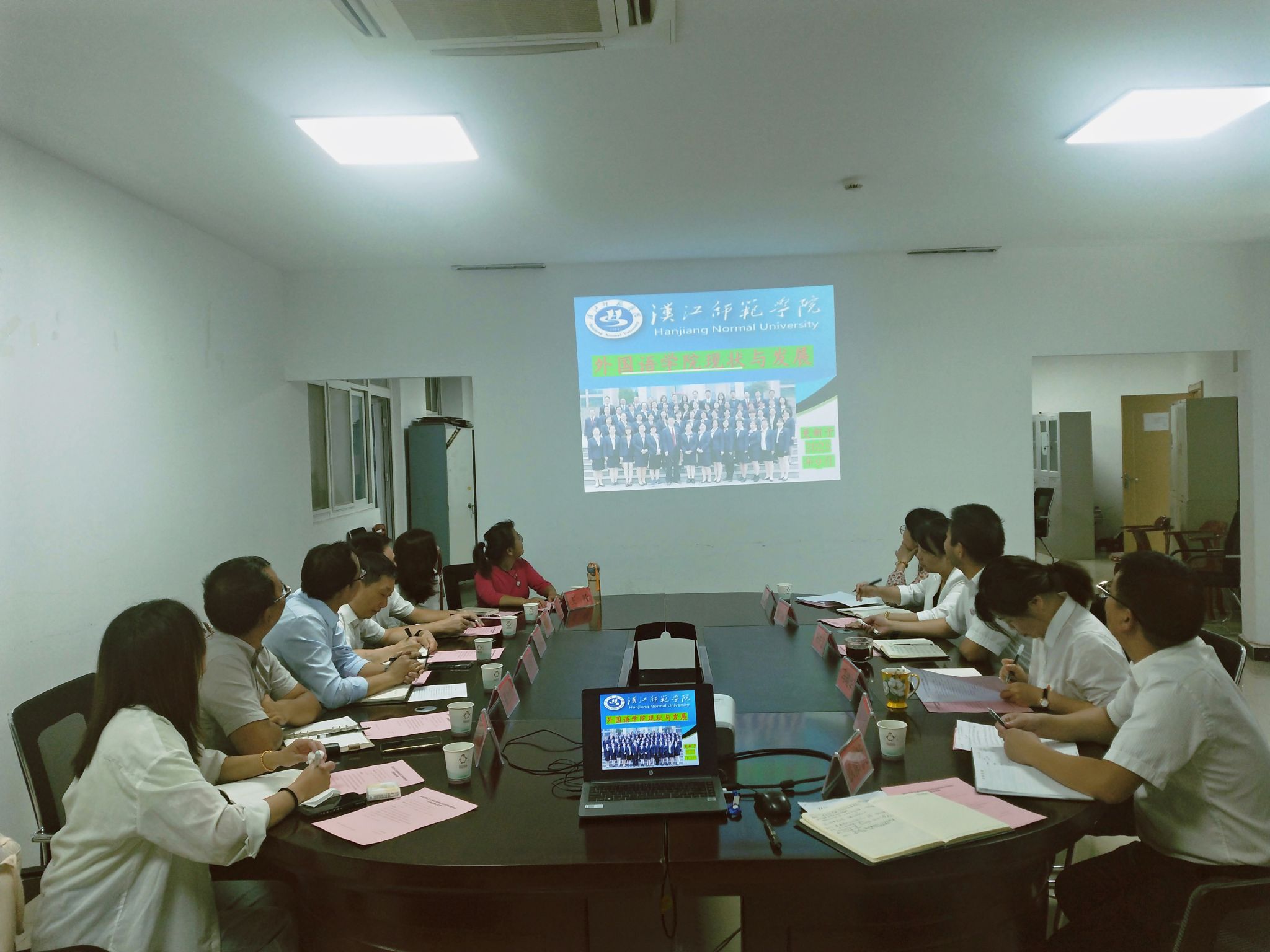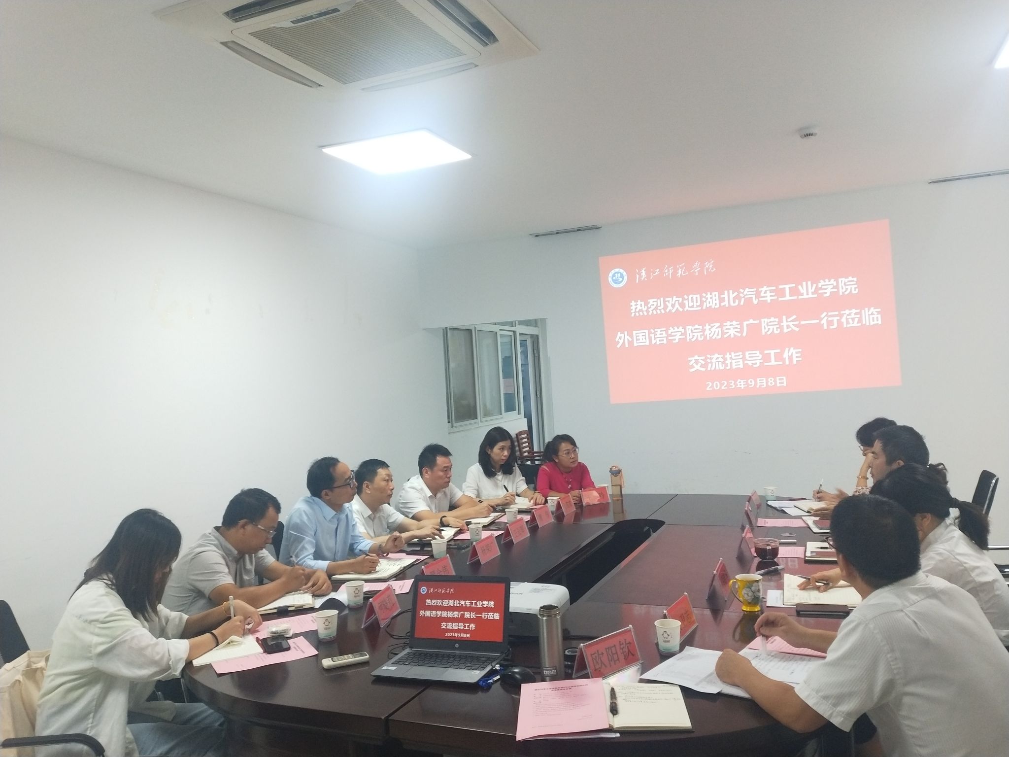 为进一步加强与兄弟院校的交流与合作、加强育人理念和育人经验的交流沟通、促进双方优质资源的共建共享,9月8日上午,外国语学院院长杨荣广,副院长王辰晖、翟全伟,分党委副书记魏伟及各系部主任一行七人赴汉江师范学院外国语学院调研交流,汉江师范学院外国语学院院长祝东江、副院长冯晓华、院办主任以及部分教研室主任出席交流座谈会。