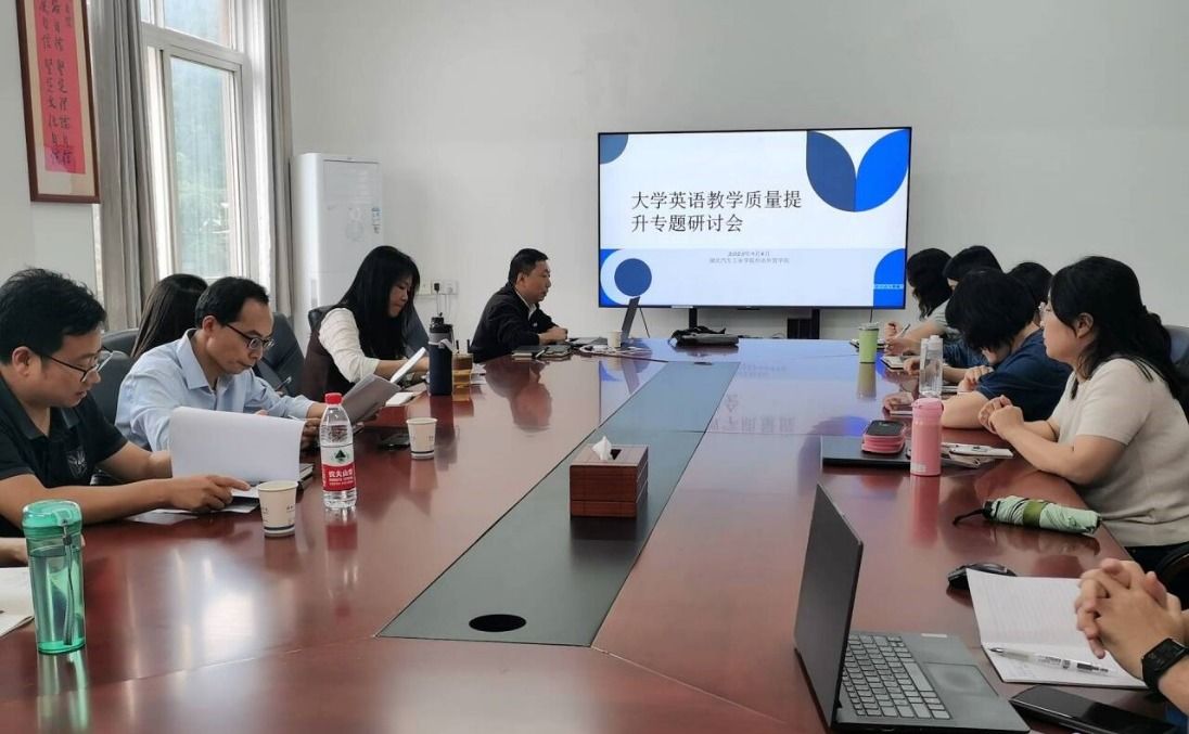 于3503会议室组织召开大学英语教学质量提升专题研讨会。会议由学院副院长王辰晖主持,院长杨荣广、学校教务处副处长李行国以及公共外语教学部全体教师参会,共同围绕大学英语教学提质增效展开深入研讨,凝聚改革共识。