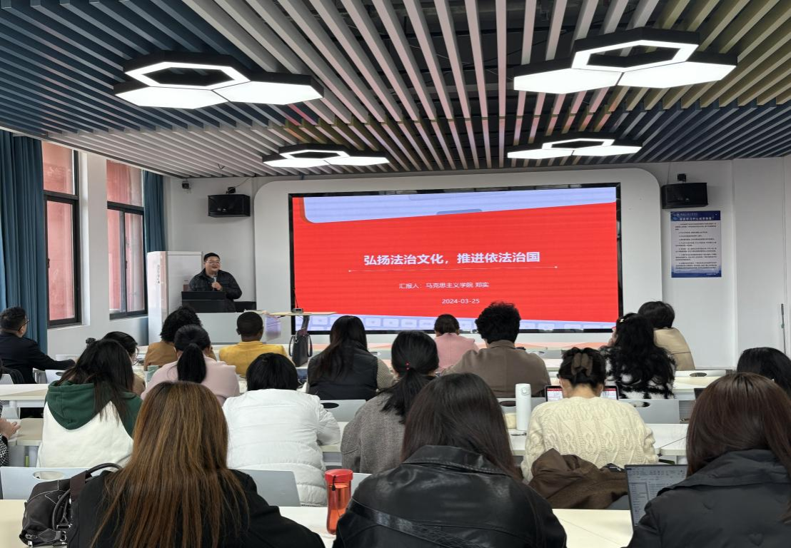 为了加强党员师生的党性修养,贯彻落实我院《党员春季轮训方案》文件精神,提高学院师生的法制意识。3月25日下午,外国语学院分党委特邀马克思主义学院郑实博士在产教大楼301讲授法治党课,全体党员师生参加。