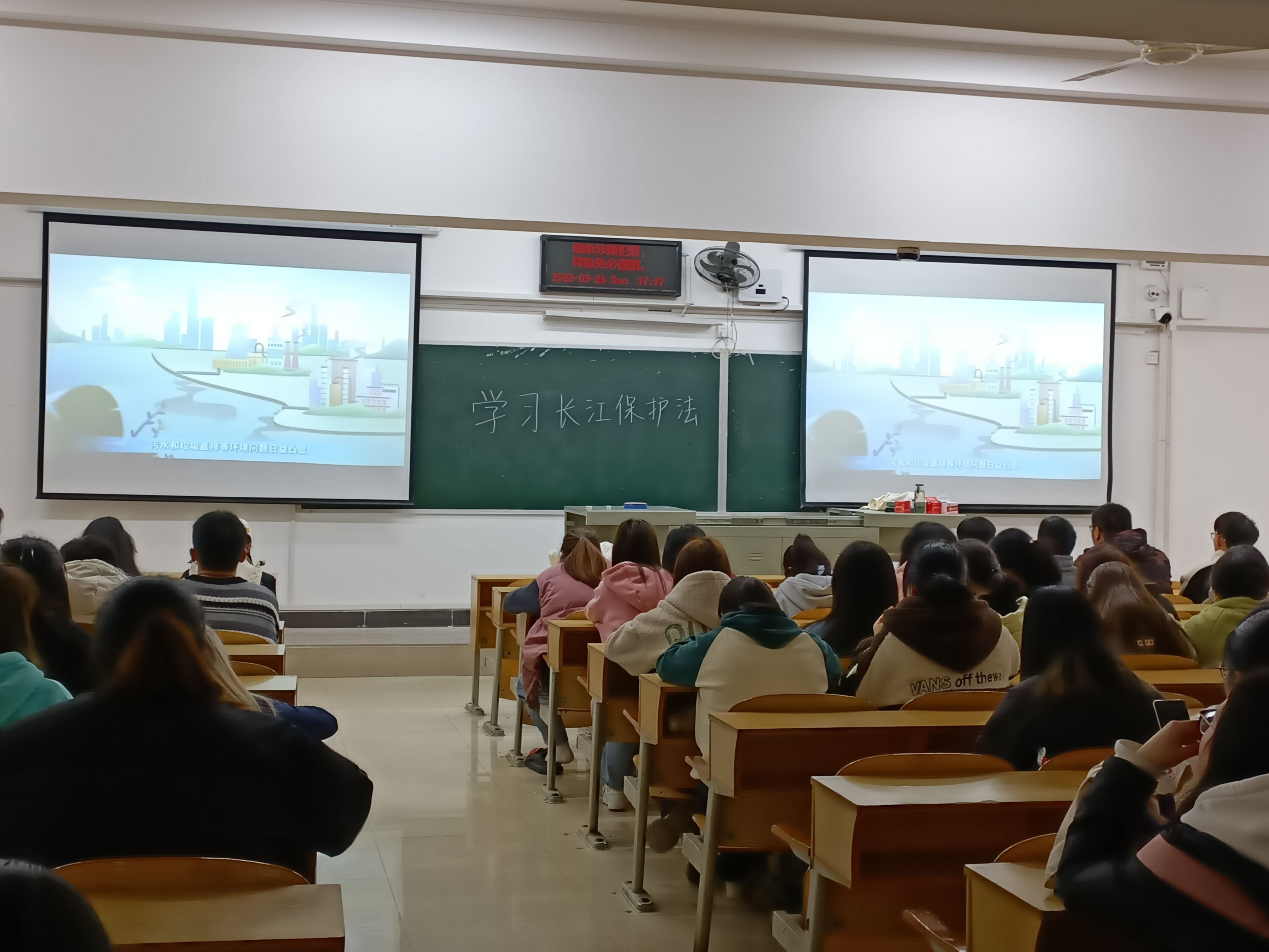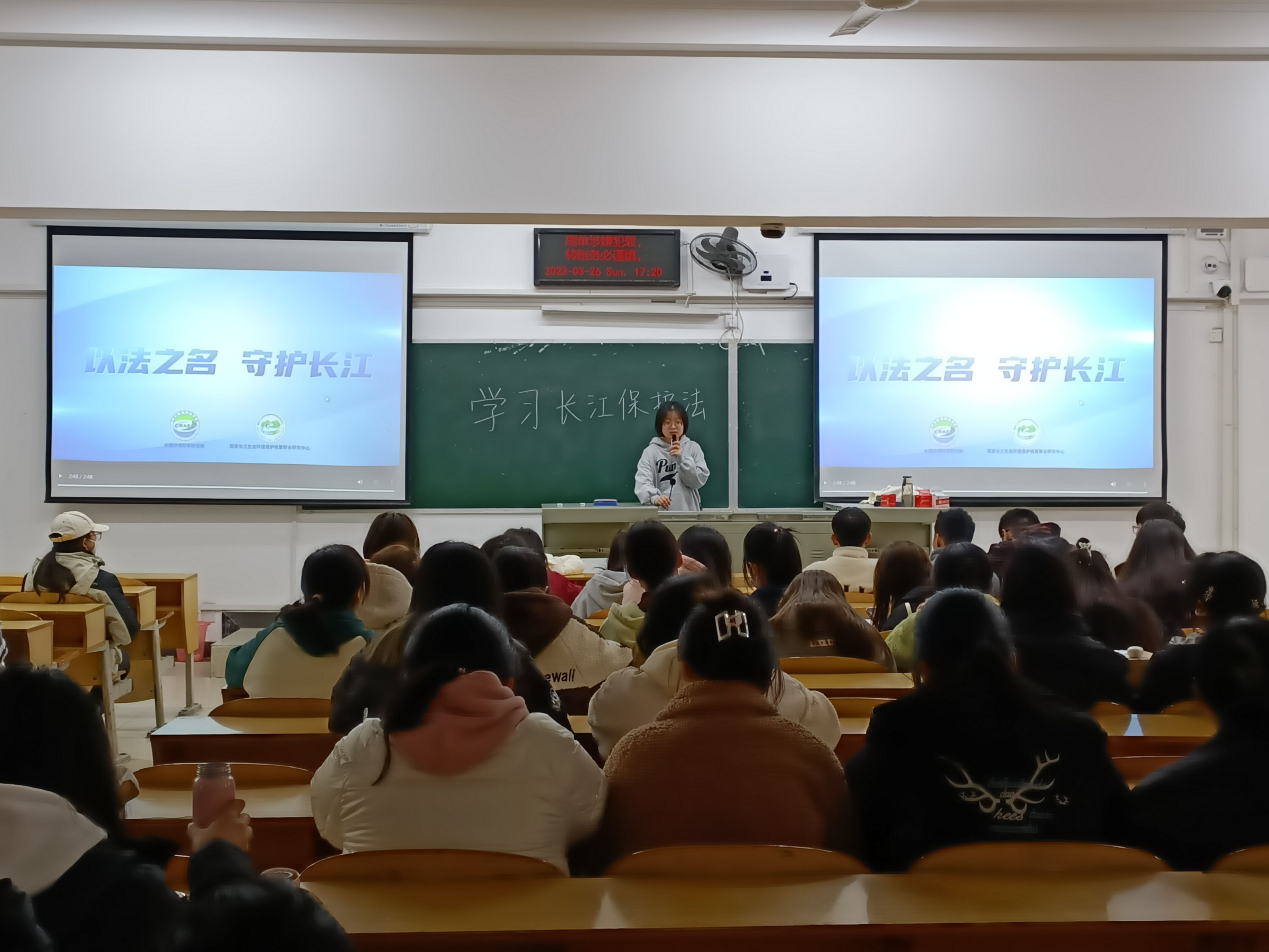 2024年3月26日晚,外国语学院于5303、5304召开了《长江保护法》学习班会。全体2022级学生参会,班会由刘可欣老师主持。