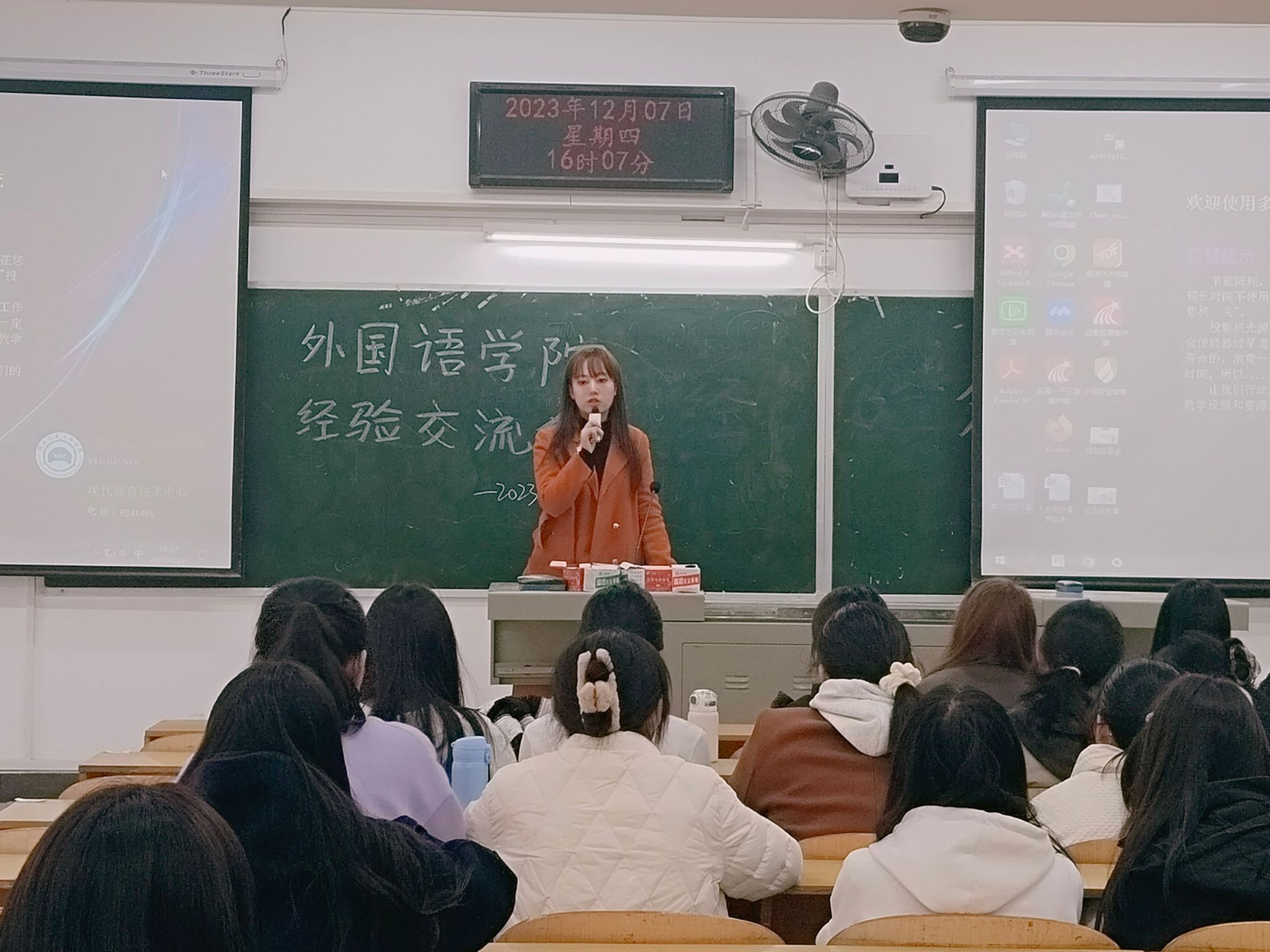 为帮助新生更好的了解大学生活,帮助同学们树立目标,外国语学院于12月7日16:00在5303教室开展了经验交流分享会,同时邀请到国奖获得者罗英杰、李云霞同学,国家励志奖学金获得者石玉好、明静、张令同学作学习经验分享。