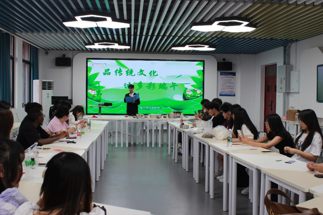 本网讯(文李露、汪娅红/图 刘馨)粽叶飘香,龙舟竞渡,又是一年端午时。为弘扬中华优秀传统文化,营造浓厚的节日氛围,在端午佳节来临之际,外国语学院英语221班“品传统文化 过多彩端午”主题班会活动于6月2日下午在产教大楼301顺利举办,外国语学院分党委副书记魏伟,教师维安、闵俏俏和孙媛受邀参加了此次活动。