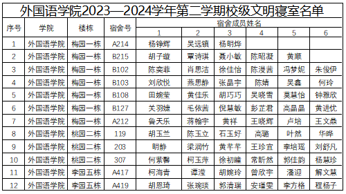 关于外国语学院2023—2024学年第二学期校级文明寝室名单的公示