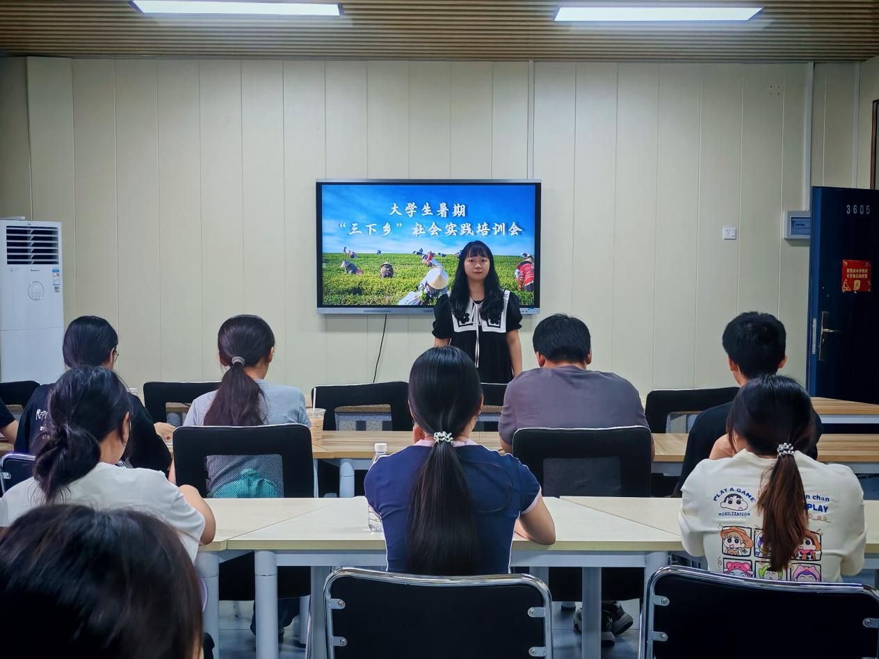 于6月24日在3605教室举行暑期社会实践培训会。学院辅导员孟甜及20余名社会实践团队队长参加了培训会。
