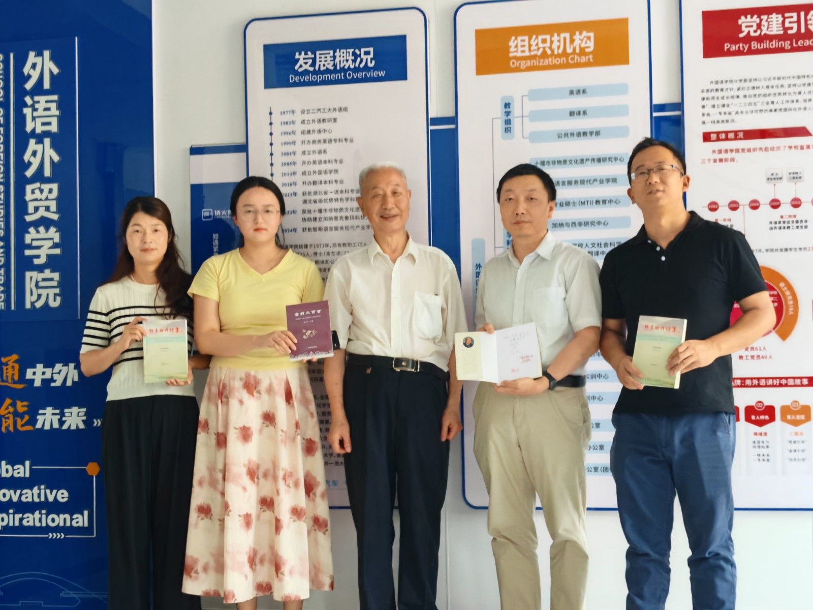 此次赠书的熊良銋先生,是十堰市第一中学退休英语教师、武汉大学1968届外文系英语专业毕业生。这位特级教师始终关注着孙女的成长,更对教育事业有着深厚感情:“佳慧的每一点进步,都离不开学校老师们的用心栽培。这些译著凝聚着我在英语教学领域的思考,送给学院,既是对育人成果的肯定,也希望能为师生们提供一点学术参考。”