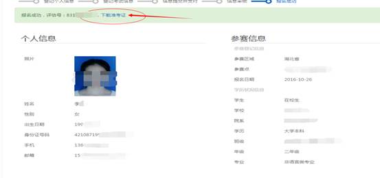 点击进入,出现个人人信息以及下载准考证字样,点击下载准考证或截图或打印点直接打印