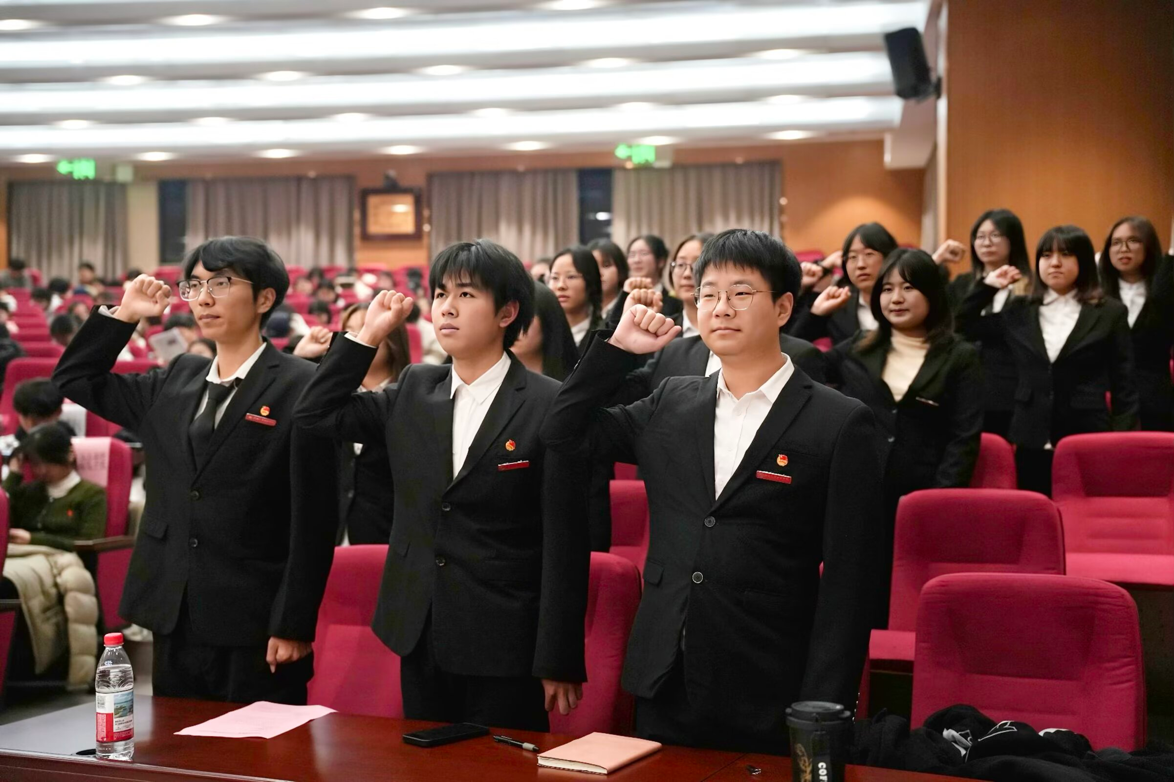 大会最后,第二十届团委学生副书记晏嘉欣带领全体成员庄严宣誓,铿锵有力的誓言彰显了外院学子的责任与担当。全体参会人员合影留念,大会圆满落幕。