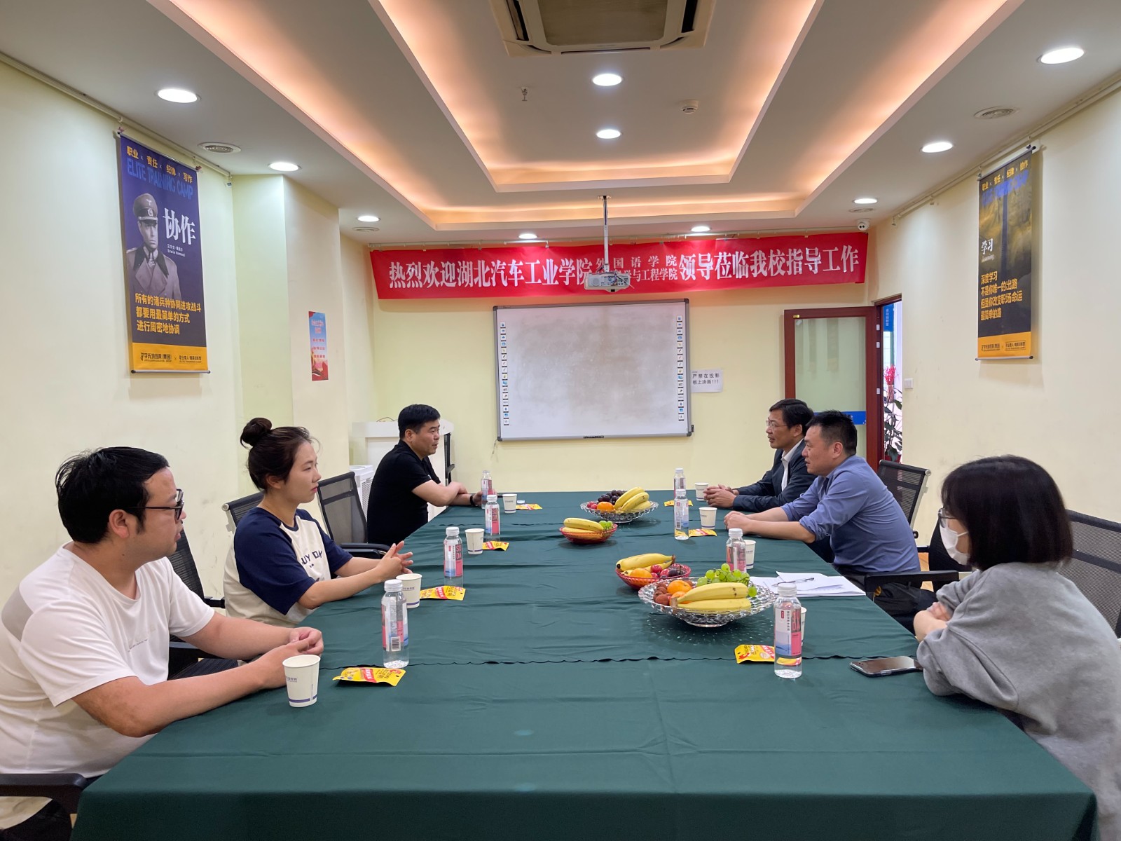 (本网讯)为进一步开拓就业市场,加强校企合作交流,提升人才培养质量和学生就业质量,5月30日下午,外国语学院分党委副书记魏伟、材料学院副院长王天国、外国语学院教师刘可欣、辅导员孟甜一行四人,赴十堰市学无境文化课培训学校开展访企拓岗工作。