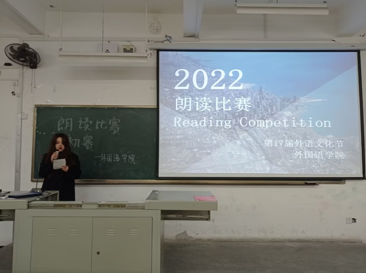 外国语学院于11月13日下午于6204教室举办了第十七届外语文化节英语朗读比赛初赛,四位评委老师高子娟、彭燕、叶小妮、胡康娜及部分2022级英语专业同学到场参加了此次比赛。