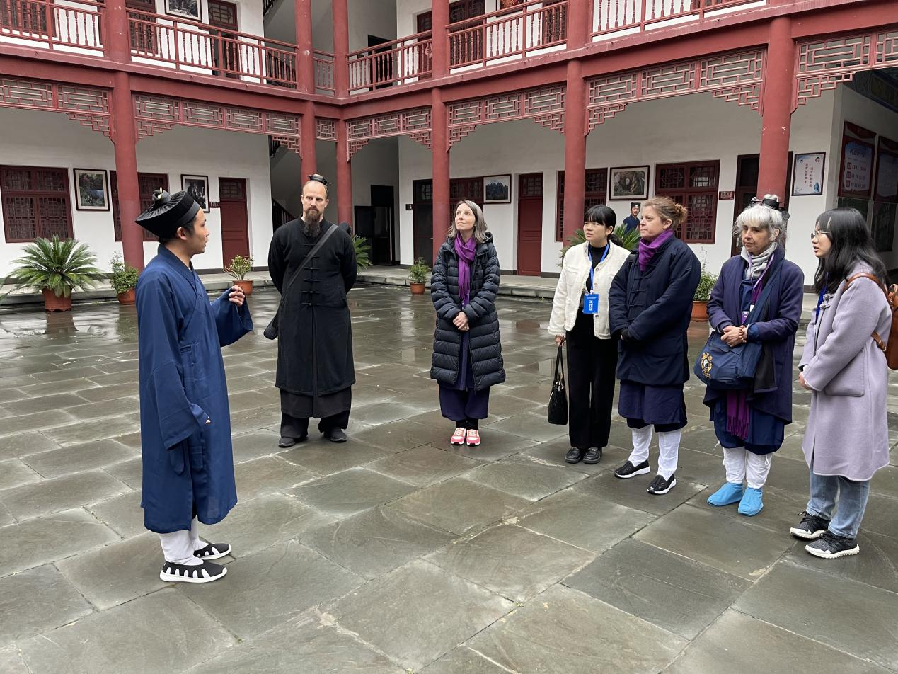 会务期间,大家各司其职。会前,翟全伟老师将中文会议手册翻译成了英文版。会议期间叶慧老师作为瑞士道教协会的陪同翻译,邓晶晶同学作为墨西哥道教协会的陪同翻译助力外国友人在会议期间的国际友人的顺畅沟通。在国际道教人才培养交流会上,外国语学院翻译系叶慧老师马克思主义学院的方垚两位老师还承担了会议交替传译任务,圆满完成了任务,为此次盛会的顺利进行做出了重要贡献。