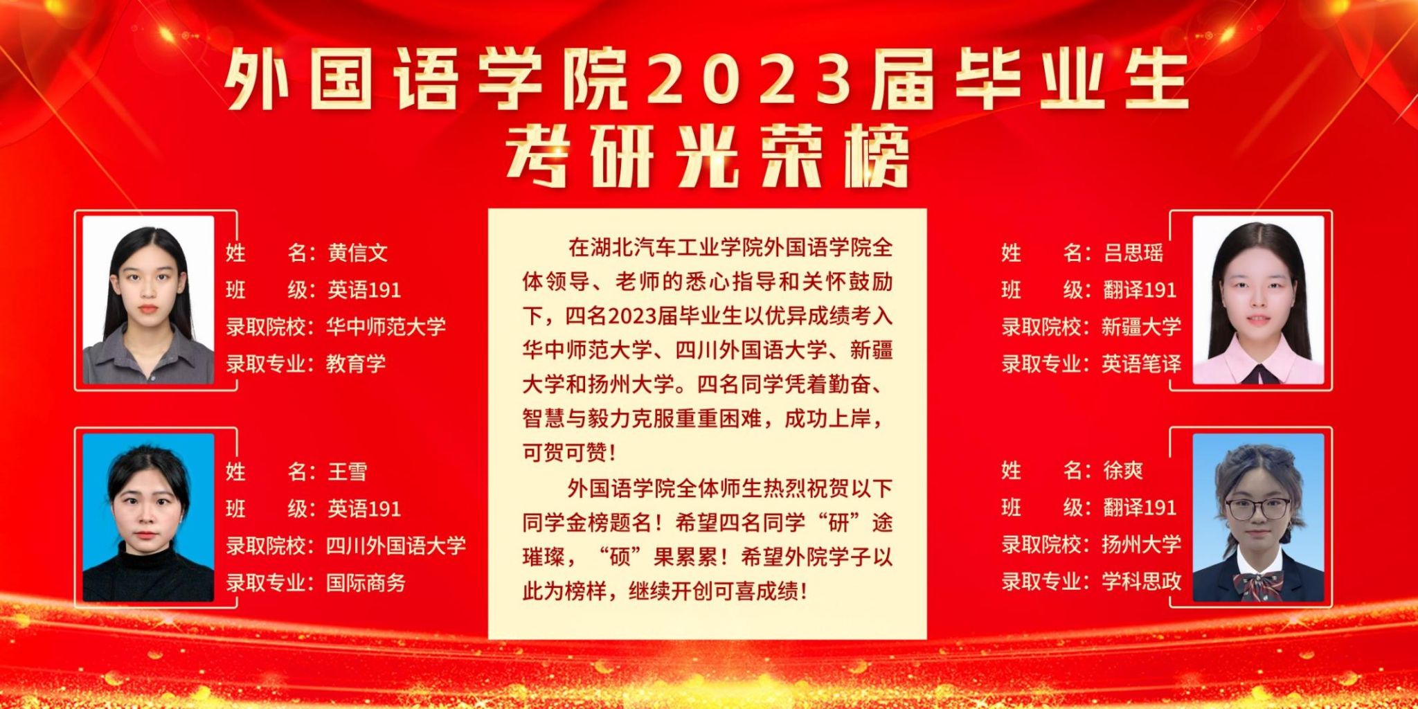 外国语学院2023届优秀学子考研光荣榜