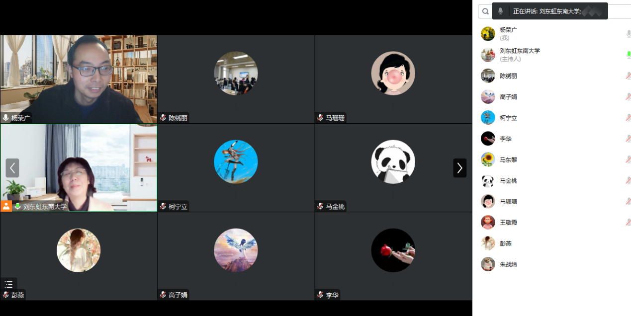 2023年2月8日,外国语学院组织召开了线上项目申报专家指导会。会议邀请东南大学教授、博导刘东虹教授指导,由副院长杨荣广主持,朱战炜院长和外国语学院跨文化与外语教学方向的老师参加了会议。会上,刘教授对该方向申报书逐一进行了点评。点评涉及选题、关键词、研究设计、研究论证、参考文献、整体格式、研究方法等诸多方面。参会老师与刘教授进行了线上互动,并表示将按照专家指导深入细致修改申报书,提升质量。