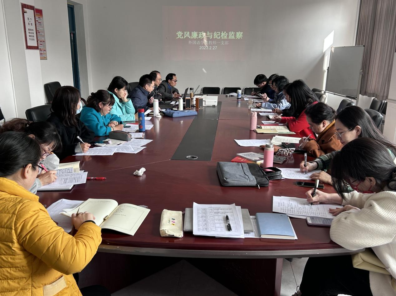 2023年2月27日下午,外国语学院教师一支部在3503会议室组织开展1、2月份支部主题党日活动暨2022年度组织生活会,支部全体党员参加,会议由支部书记柯宁立主持。