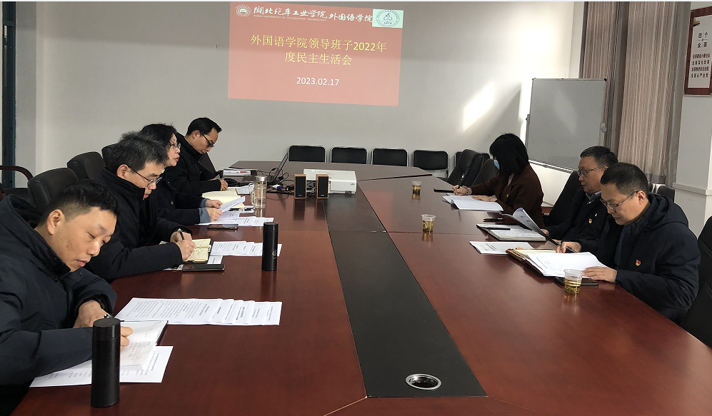 2023年2月17日下午,外国语学院领导班子2022年度民主生活会在学院3503会议室召开,校党委常委、组织部部长王镇、研究生处副处长兼分党委副书记杜祥军、科技学院经管系主任龚雪等督导组一行3人到会指导,外国语学院领导班子全体成员参加了会议,会议由分党委书记宋涛主持。