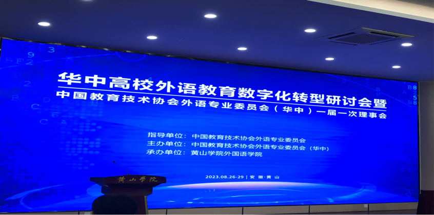 8月27号,由中国教育技术协会外语专业委员会指导,中国教育技术协会外语专业委员会(华中)主办,安徽黄山学院外国语学院承办的华中高校外语教育数字化转型研讨会暨中国教育技术协会外语专业委员会(华中)一届一次理事会在安徽黄山市召开。来自北京、天津等全国各地的外专委委员以及湖北、湖南、安徽、河南等华中四省几十所高校外语学院领导和外语实验技术界的专家、学者、外语教育技术企业代表100余人出席会议。我院代表应邀参加会议。