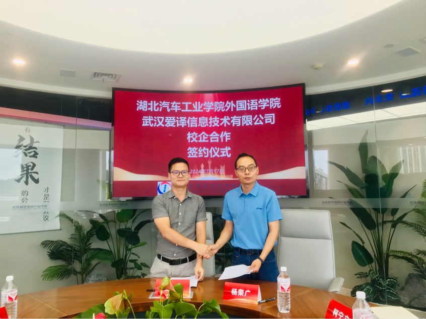 在武汉爱译信息技术有限公司,双方就如何应对人工智能对传统翻译、语言专业的挑战,如何联合开展人才培养等问题深入交换意见,双方共同签署了校企合作协议和实习就业协议,并就派遣外院学生来汉实习达成初步意向。杨荣广一行还在公司负责人带领下,参观了武汉长江国贸跨境电商产业园,与在园区实习的省内其他高校学子进行了交流,并围绕外贸和跨境电商人才需求问题与入驻园区的多家企业负责人展开交流。