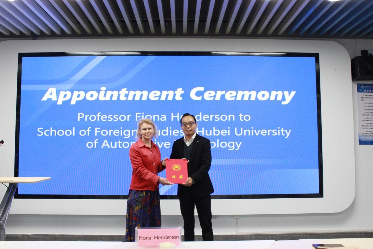 王辰晖教授做开场介绍后,杨荣广教授进行了热情洋溢的欢迎致辞。他指出,亨德森教授是建院以来首位从澳大利亚来访的学术专家,她的到来是与学院世界对话、与未来握手的生动体现,希望通过与专家的互动能够共同探索语言与科技交叉融合的新路径,为学生提供更加国际化、前瞻性的知识体系,加深中外教育界的合作,让学生有机会站在国际舞台上展示才华,也藉此机会展现中国当代教育新风貌,并期待这次工作坊能够成为中澳双方文化沟通的桥梁,促进不同文化背景下的教育理念交流,为建设一个更加开放、包容的学术环境贡献智慧和力量。随后,杨荣广教授向亨得森教授颁发顾问聘书,并代表学院接受了对方赠送的学术书籍。