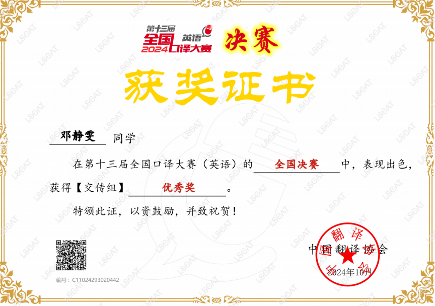 登上全国决赛的舞台。在决赛中,他们展现了我院学子在语言学习与实践中的成就与精神风貌,最终均荣获优秀奖。