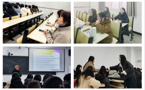 学院领导班子分别带队深入国际经济与贸易专业的《国际金融》《国际贸易实务》、翻译专业《英汉笔译》、英语专业《综合英语IV》《综合英语II》《语言学导论》、公共外语部《大学英语》、第二外语教学部《日语》等课堂,倾听查看了潘卫华、闵祖传等10位老师的授课情况。