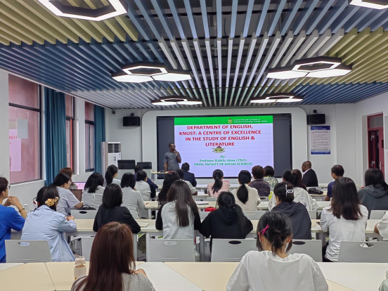 恩克鲁玛科技大学人文学院主任阿巴斯・卡比拉教授和国际处副处长曼富尔・埃斯梅兰达教授分别开展了题为“加纳恩克鲁玛科技大学英语系:英语和文学研究的卓越中心”和“恩克鲁玛科技大学和海角社区