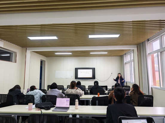 本网讯(文/图 章成成)3.23日,翻译系举办教学法交流活动,翻译系教师王凯伦以“以国际时政新闻为案例的英语语法教学的尝试”为题作专题分享,全系多位教师参与交流,现场讨论气氛热烈。