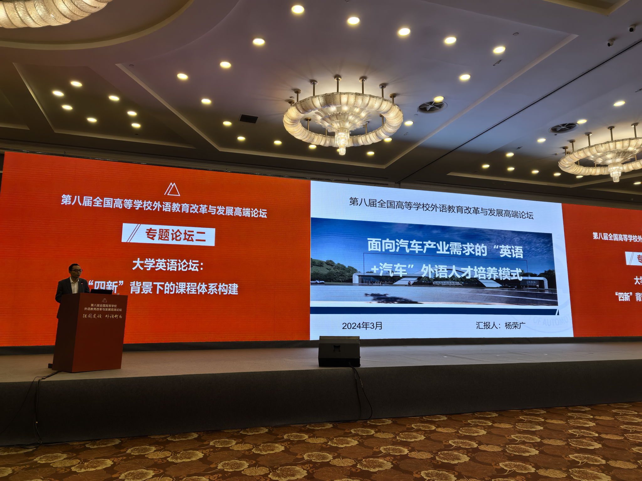 外国语学院教师杨荣广应邀参加此次研讨会并以“面向汽车产业需求的‘英语+汽车’外语人才培养模式”为题做主题发言。杨荣广在分享中介绍了学校的发展历史和当前进展,并以外国语学院公共外语的“分类分级模式”和英语类专业的“英语+汽车”培养模式为例阐释了新工科和新文科背景下外语学科在培养应用复合型人才方面面临的挑战与机遇。与会教指委专家肯定了海角社区