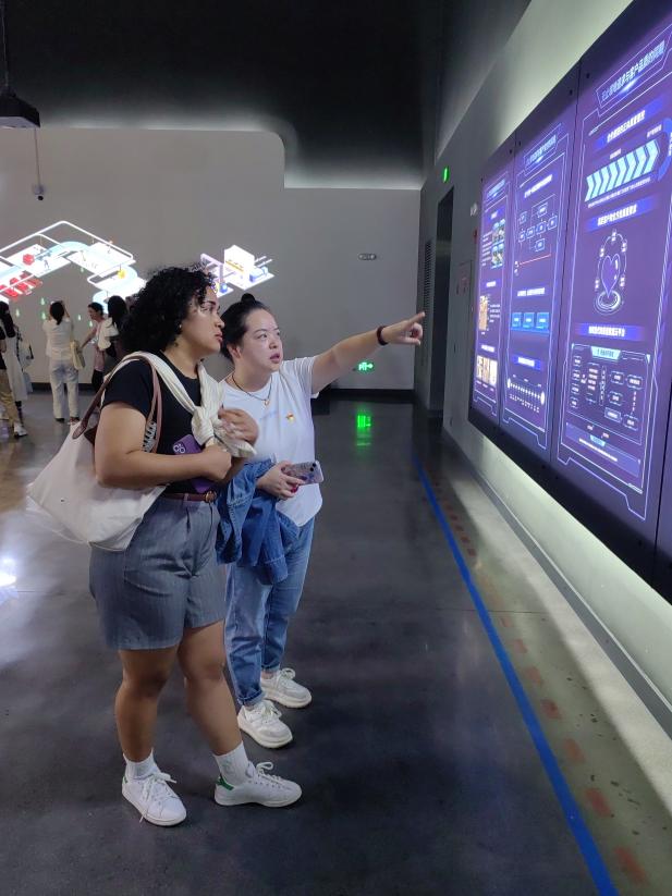 在企业讲解员的引导下,外国语学院教师参观了东风商用车的发展历程展览,深入了解了品牌文化区所传达的核心价值理念、企业使命与愿景。多媒体互动与实物展览让东风商用车的企业文化和品牌精神深入人心。工业4.0技术的展示,包括物联网、大数据分析和机器人自动化,让人赞叹其“中国智造”的精妙与严谨。
