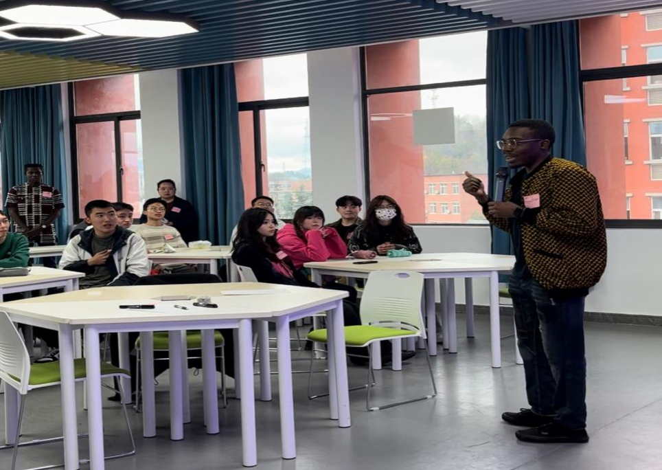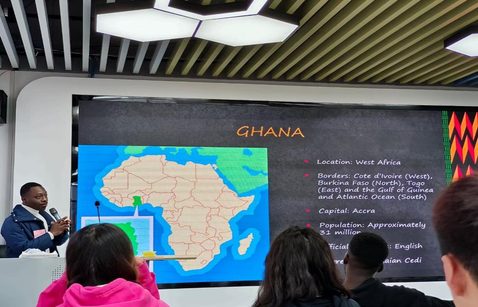 现场还准备了丰富的甜点和零食,为大家营造了一个轻松愉快的交流氛围。活动在“youmimic,Iguess”游戏中达到高潮,现场气氛热烈。“一位来自加纳的留学生Emmanuel Ofori介绍了加纳的当地文化,令人印象深刻。”参加活动的同学都纷纷表示,英语角活动为帮助同学们练习英语口语、丰富语言与文化知识提供了一个有利的契机。