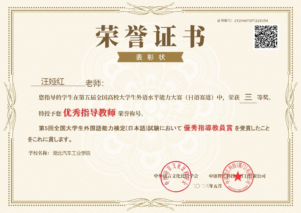 学生取得优异成绩!本次大赛充分调动了学生的积极性和自律性,既有利于学生增进学习兴趣、提高学习技巧,还有利于学生提高日语其他级别考试的通过率。