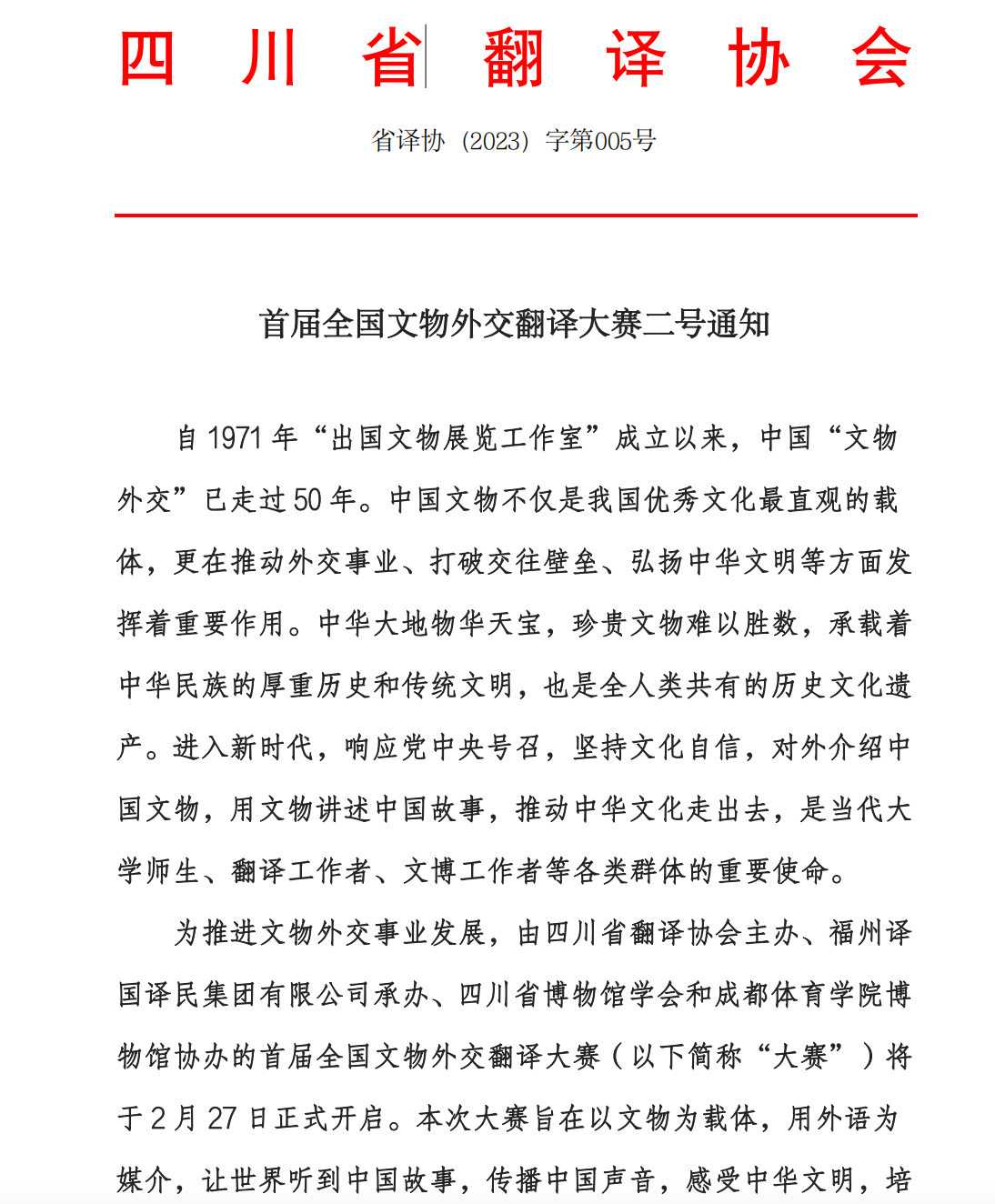 关于首届全国文物外交翻译大赛二号通知