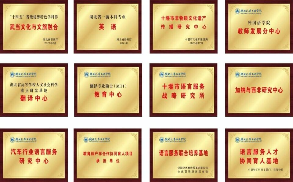 外国语学院始建于1977年,现有英语和翻译(英语)两个专业,学生近700名。其中,英语专业为湖北省一流本科专业,以汽车贸易为专业特色;翻译专业以汽车类科技翻译为特色,是鄂西北地区唯一的翻译本科专业、湖北省优势特色学科群支撑专业。