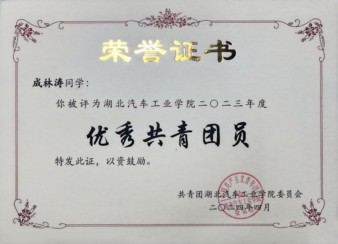 立身以立学为先,立学以读书为本。在专业学习中,成林涛始终保持严谨专注的态度,专业成绩居年级前5%。他语言功底扎实,以优异的成绩通过了各项专业语言考试和学业考试,在学习中坚持学思结合、知行合一,以精益求精的态度不断提升专业硬实力。他在加强理论知识学习的同时,坚持以考促学,在竞赛实践中不断夯实自己的专业知识。凭借扎实的学业表现,他连续多次斩获人民奖学金,曾荣获“三好学生”、第四届全国高校商务外语综合能力大赛省赛三等奖等荣誉、奖项,成为班级、学院的学业标杆。