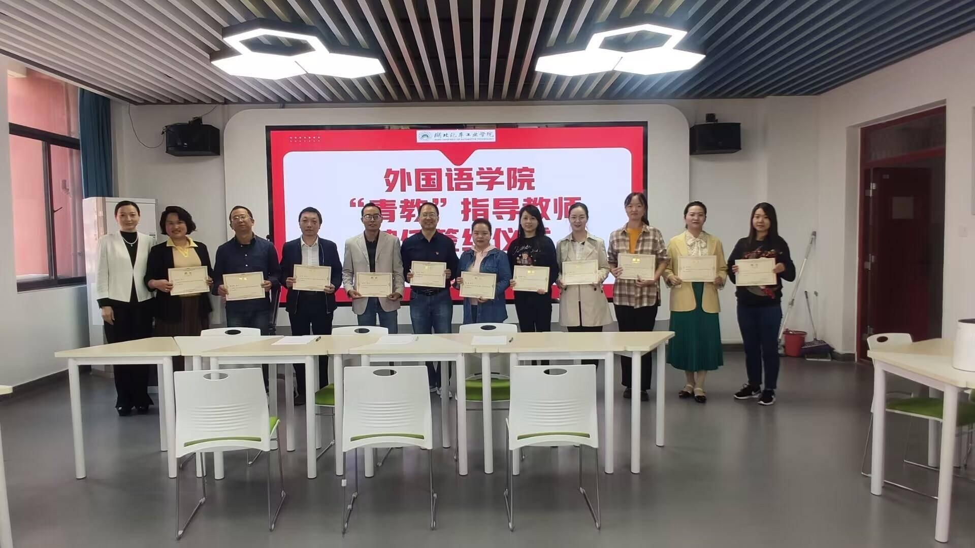 外国语学院举行2023年“青教”指导教师聘任签约仪式为了发挥学校骨干教师的示范和引领作用,加快新入职青年教师的成长步伐,外国语学院于10月16日在产教中心301室举行了2023年“青教”指导教师聘任签约仪式。本次仪式由副院长王辰晖主持,分党委书记郭义坤、院长杨荣广、副院长翟全伟以及外国语学院全体教师参加了本次活动。 活动伊始,分党委书记郭义坤为2023年“青教”指导教师颁发聘任证书,并叮嘱指导教师要充分发...